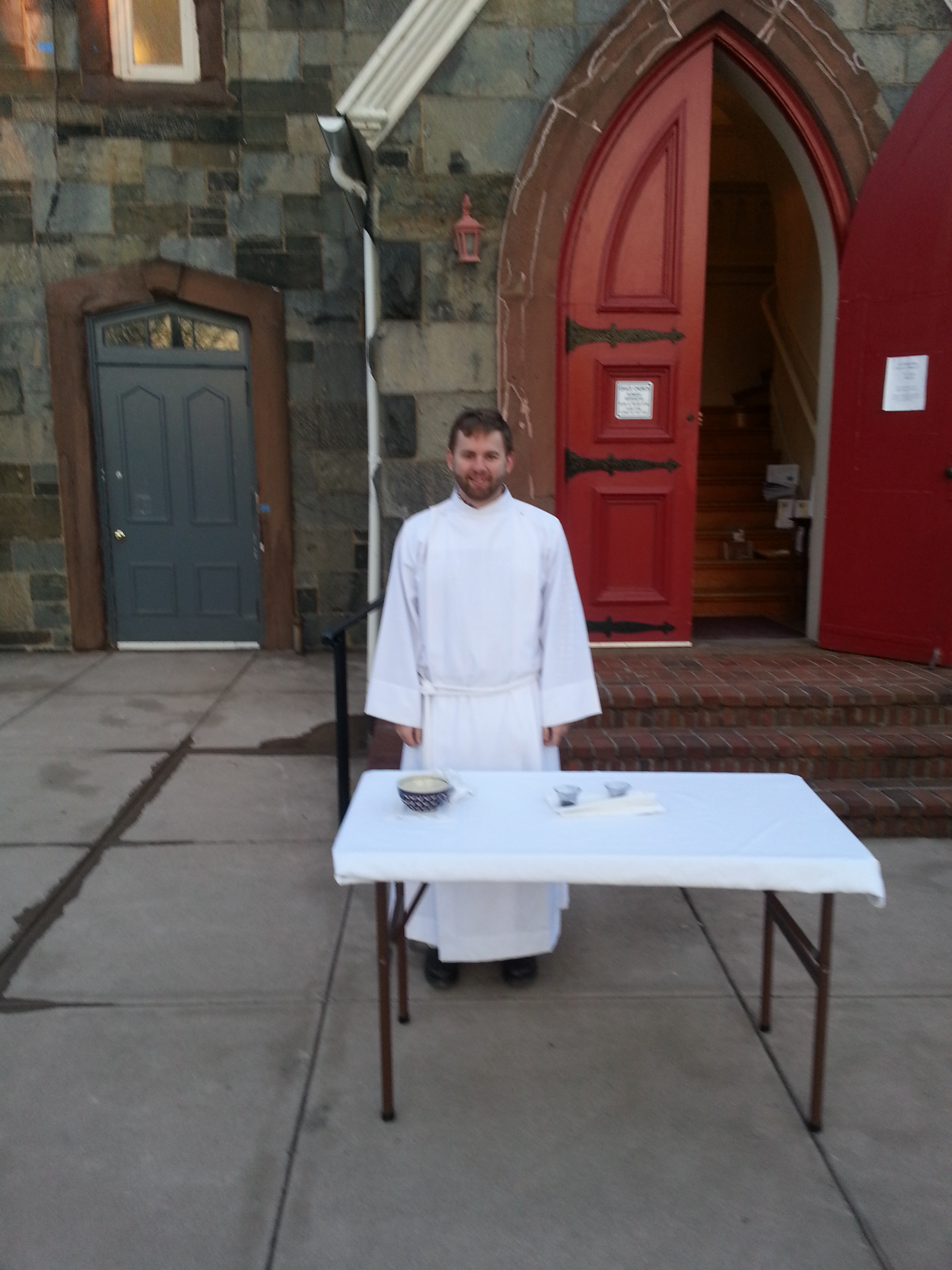I had the pleasure of participating in my first “Ashes to Go” outreach this year. Joining together with the Rev. John Graham (my field education supervisor), we provided ashes to people in the Georgetown neighborhood who frequently use our grounds as a convenient shortcut (which we encourage). Braving cold and a chilling breeze (which only got colder when the sun went down behind the buildings), we met, prayed with, and welcomed many people over the course of the post-work hour of 5-6pm.