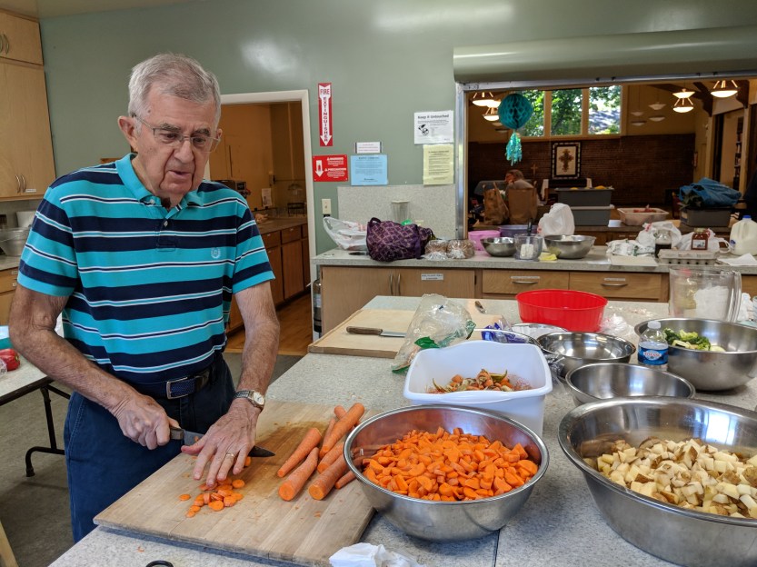 I have been here for two weeks, and I already see the doers in our midst. On my third day, I was introduced to Carey and learned about Radical Love. On my first Sunday I met Erika and heard more. This past Wednesday I talked with Carey, Erika, Jack, Nick, Bev, and more who were in the Kitchen helping prepare the meal. What a first impression of this place and the people that make up this body of faithful believers. What a gift that these people are offering to our community. What a gift to provide nutritious, delicious, wholesome, life-giving meals that say to all those who receive them, there should be no barrier to your experiencing a meal prepared in love, prepared with care and concern for those who will eat it. That no matter what human precepts have sprung up in this place, in our world, that creates disparity in access to something that should be simply available: real food, cooked with real love, given to real people, there are doers who see this disparity and are doing something to combat it. There are doers in this place who see the evil that lurks waiting to cement its place in our hearts, and respond by spreading the love of God out into our community and the world.