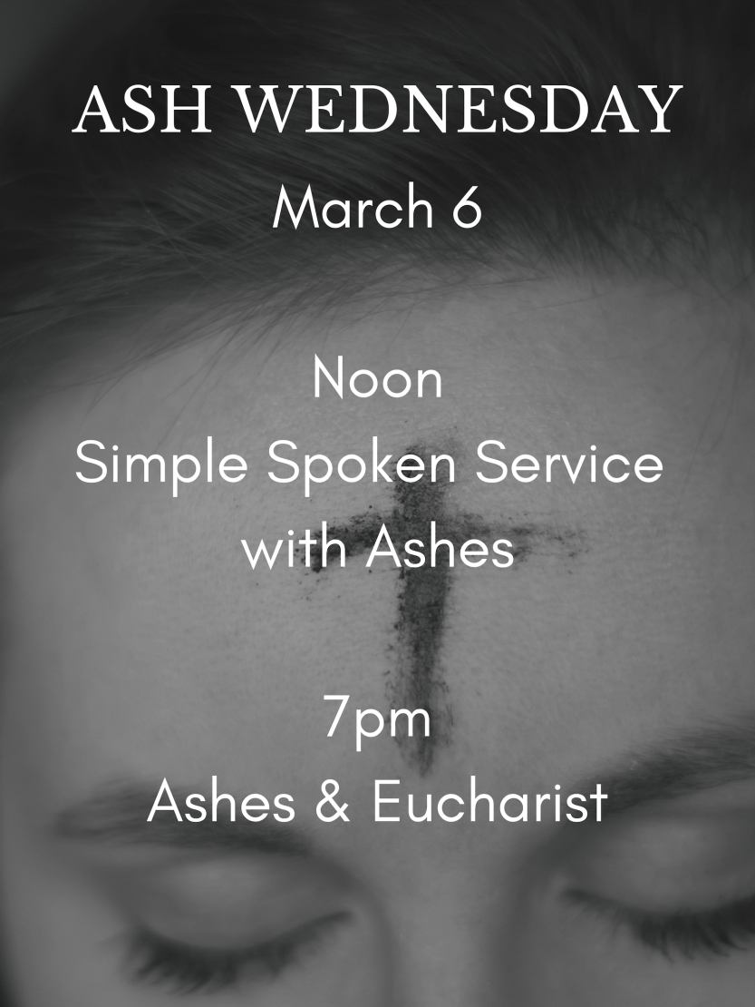 I hope that you will join us this Ash Wednesday. I especially hope you will join us if you have never had the opportunity to experience this service. In order to make it as accessible to as many people in our community, we will observe Ash Wednesday at Noon with the imposition of ashes in a short service (roughly 20 minutes) designed for those who are able to break away from work for a lunch time prayer service or who find themselves with availability in the middle of the day but not the evening. At 7pm on Ash Wednesday we will gather for the Ash Wednesday service with the imposition of ashes and the celebration of the Eucharist. I hope that you will be able to join us for one of these services.